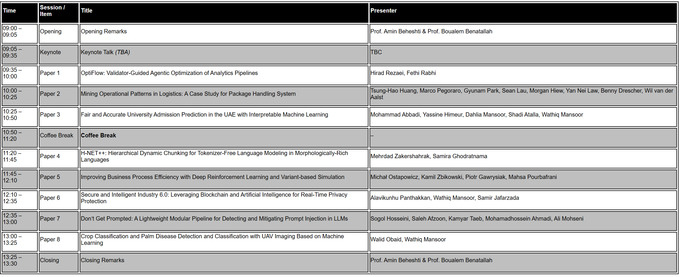 • The 5th International Workshop on AI-enabled Process Automation, Dec 3 2024, ICSOC Conference, Tunis, Tunisia
